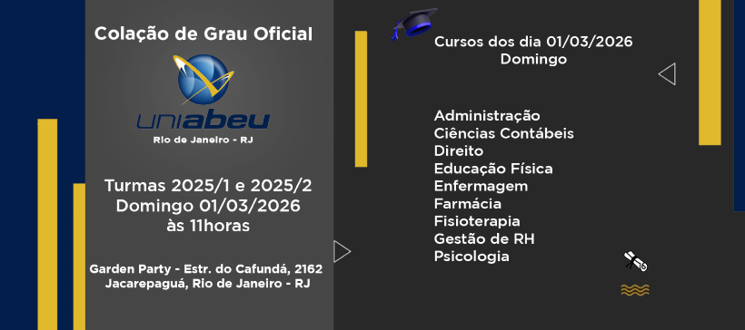 Colação de Grau Oficial UNIABEU dia 01 de Março - Domingo às 11h
