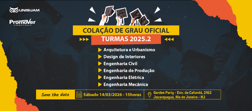 Colação de Grau Oficial UNISUAM dia 14 de Março - Sábado às 15H