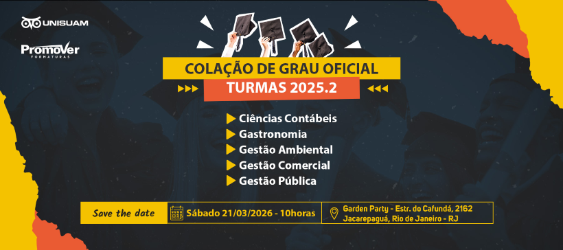 Colação de Grau Oficial UNISUAM dia 21 de Março - Sábado às 10H
